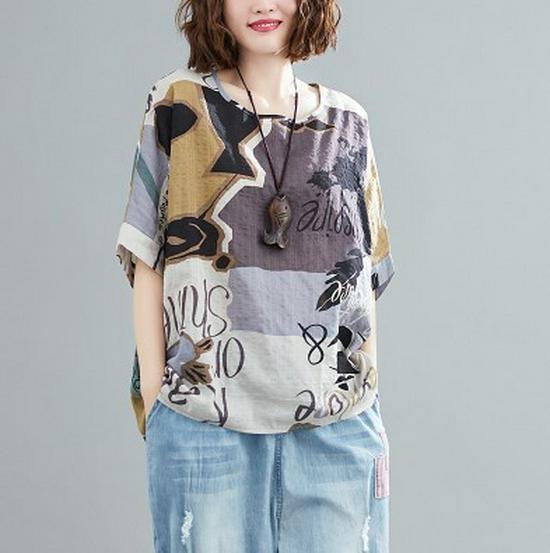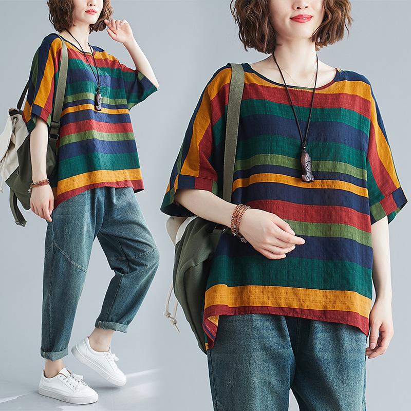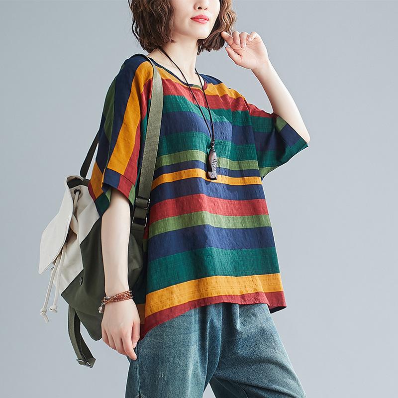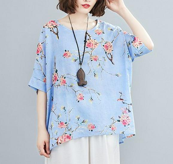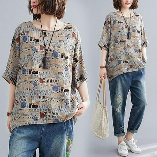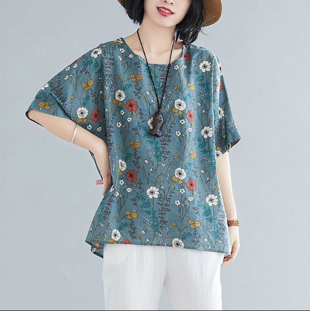 Летние женские футболки больших размеров с коротким рукавом, свободные винтажные повседневные лоскутные цветочные рубашки из хлопка и льна