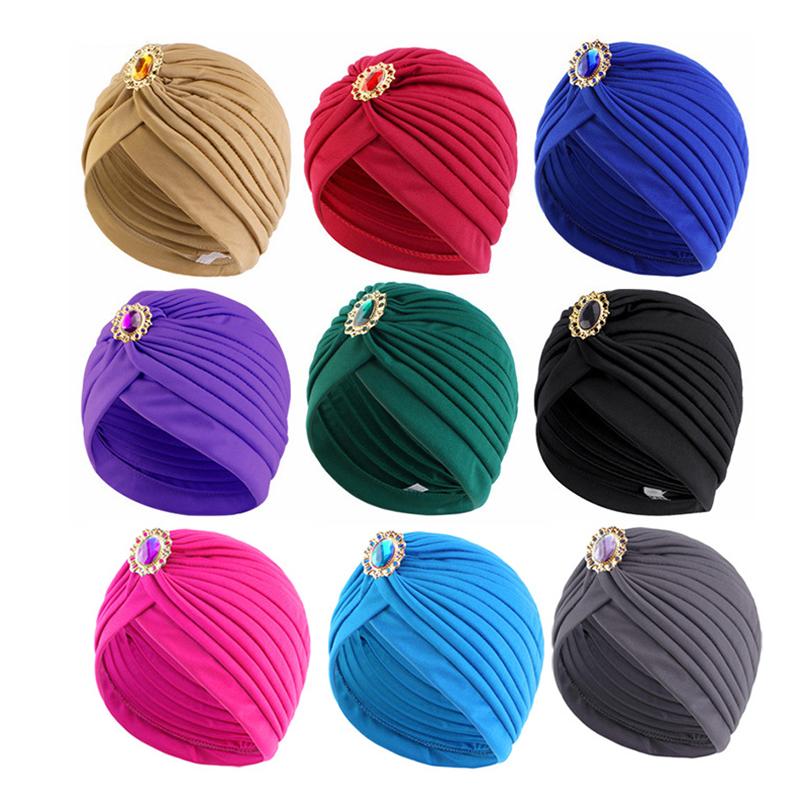 1 шт. однотонный летний головной убор, повязки на голову, мусульманский солнцезащитный хиджаб, ретро-этнические индийские шляпы, тюрбан, сверкающие бриллианты