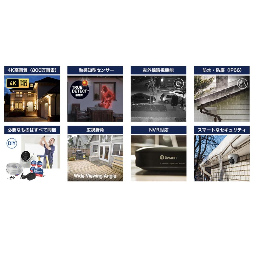 Japanese Swann Security Camera NVR 4K 8 Megapixel Dome Type Security Camera Outdoor Indoor Specification IP66 Waterproof and Dustproof Compatible Heat
