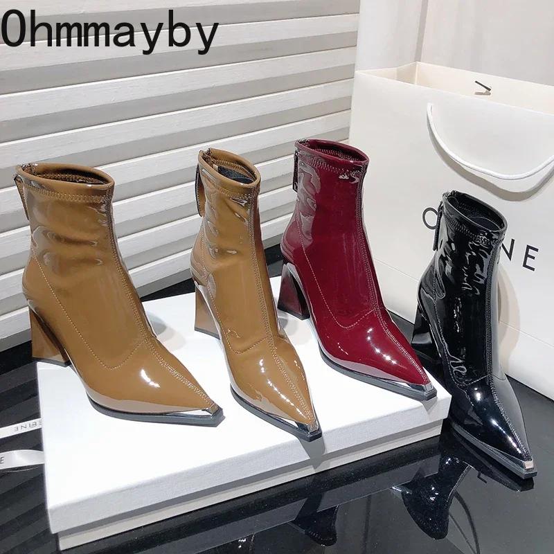Дизайнерские винтажные женские ботильоны с острым носком, модные высокие каблуки, короткие ботильоны, осенне-зимняя женская обувь