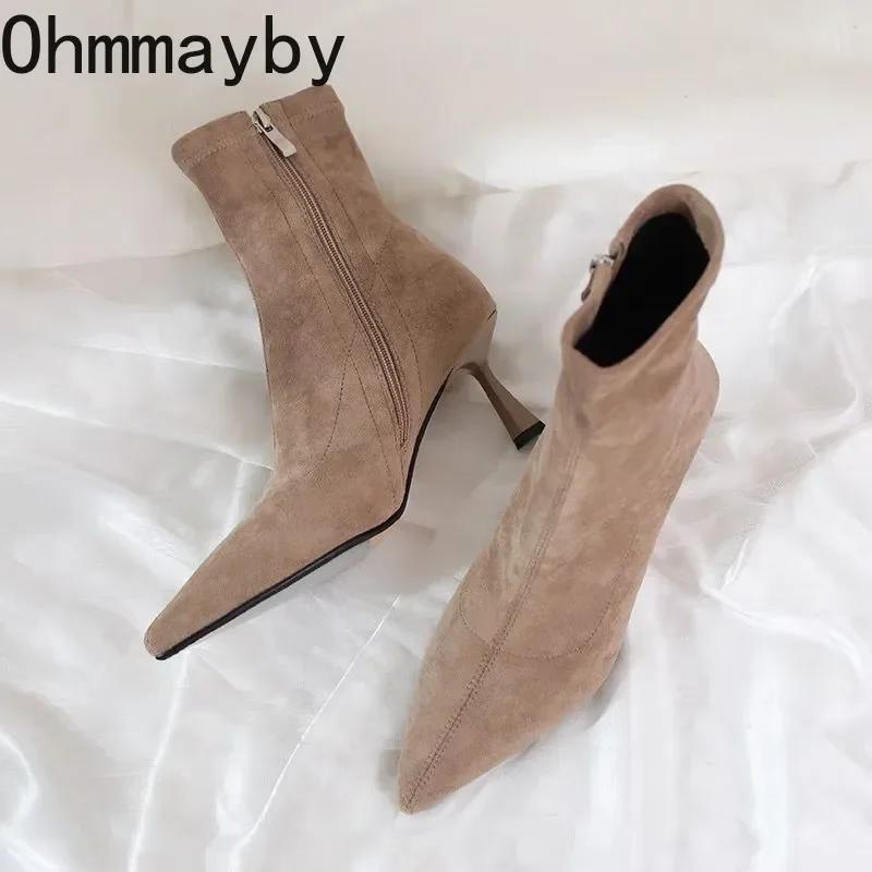 Остроносые женские флисовые сапоги-носки, модные туфли с боковыми молниями, осень-зима, высокие каблуки, женские короткие сапоги Morder — купить товар онлайн с бесплатной доставкой по всему миру!