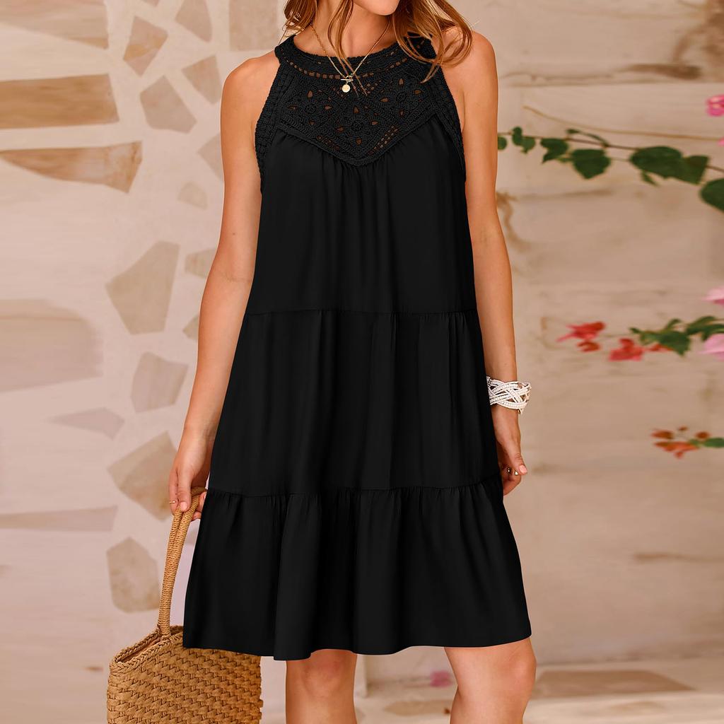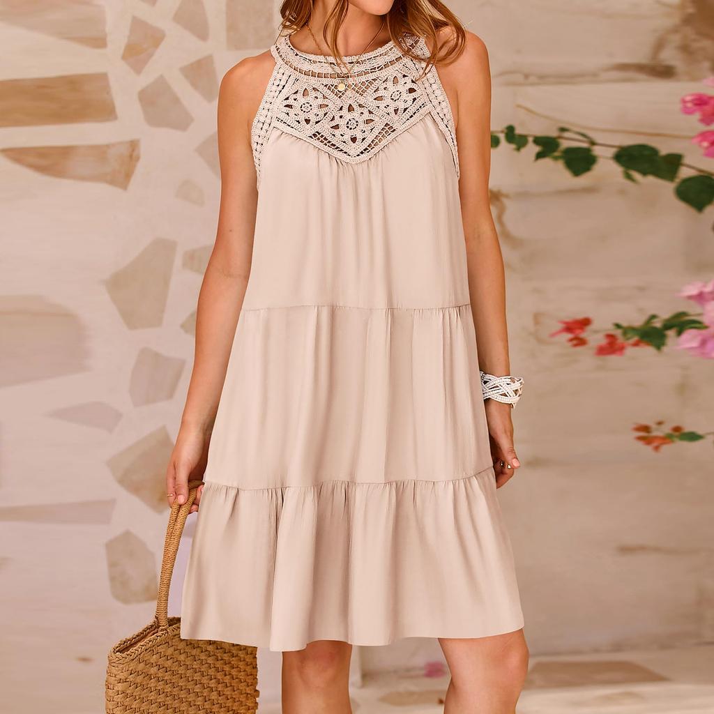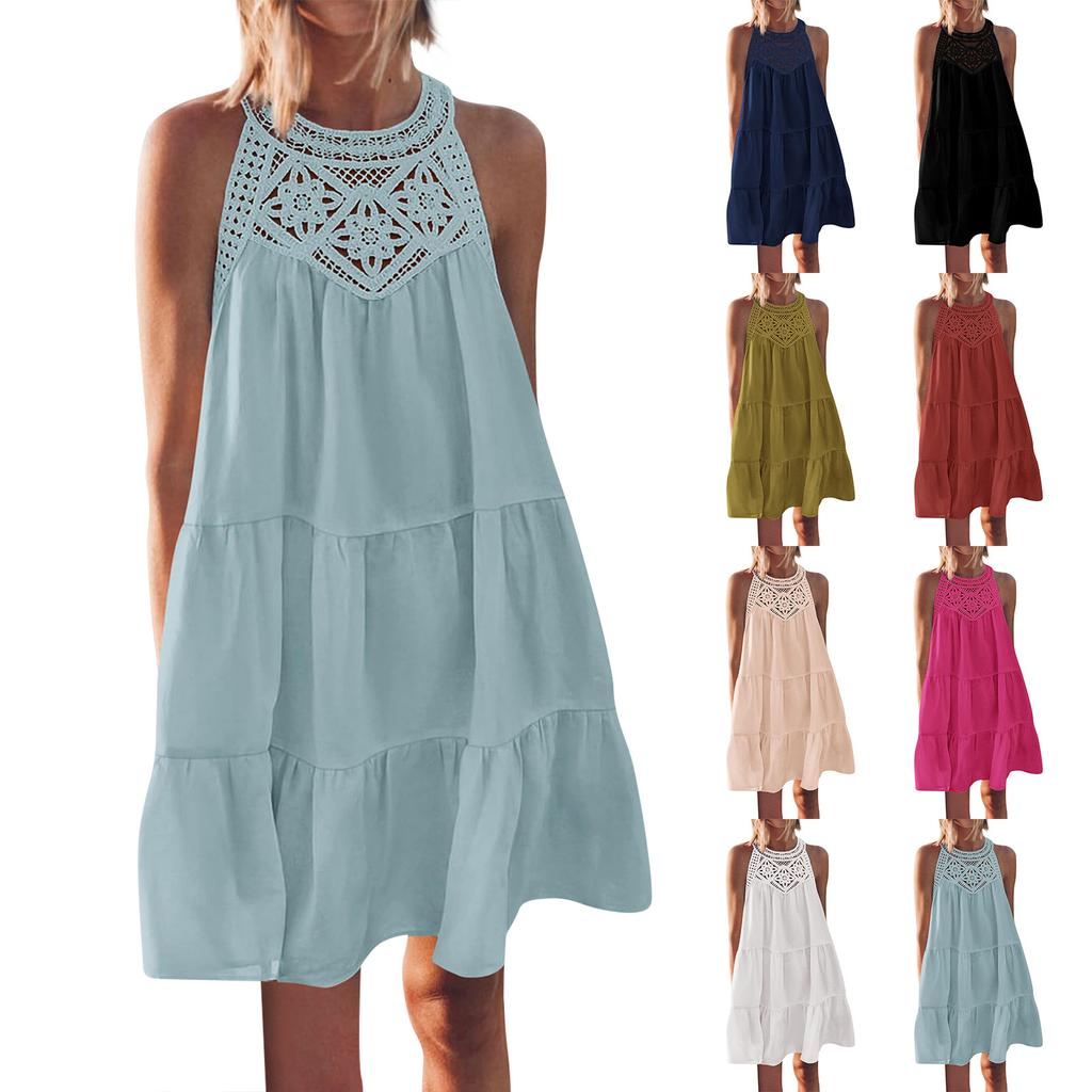 Женское летнее платье с вырезом, повседневное многослойное платье трапециевидной формы без рукавов, распашное платье-майка, платье для пляжного отдыха
