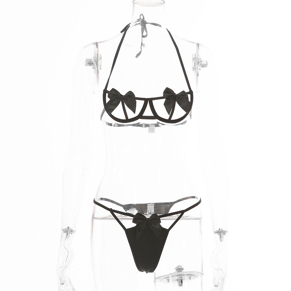 Комплект женского нижнего белья с бантом, сексуальное нижнее белье, повседневный комплект с бюстгальтером и трусиками