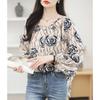 Темперамент круглый вырез элегантные повседневные рубашки женские топы весна длинный рукав цветочный принт свободная блузка женская винтажная на пуговицах офисная женская рубашка 26328