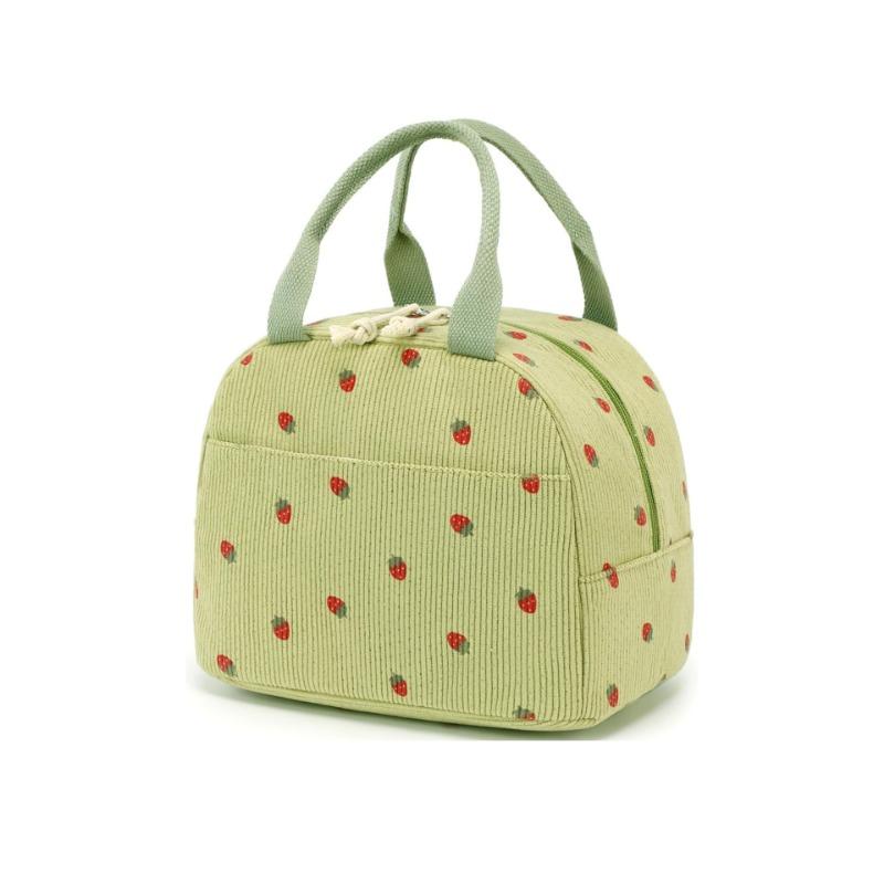 Сумка для ланча из вельвета с принтом клубники, термоизоляционная сумка для хранения ланч-боксов, сумка-холодильник для детей и школьников, сумка для пикника