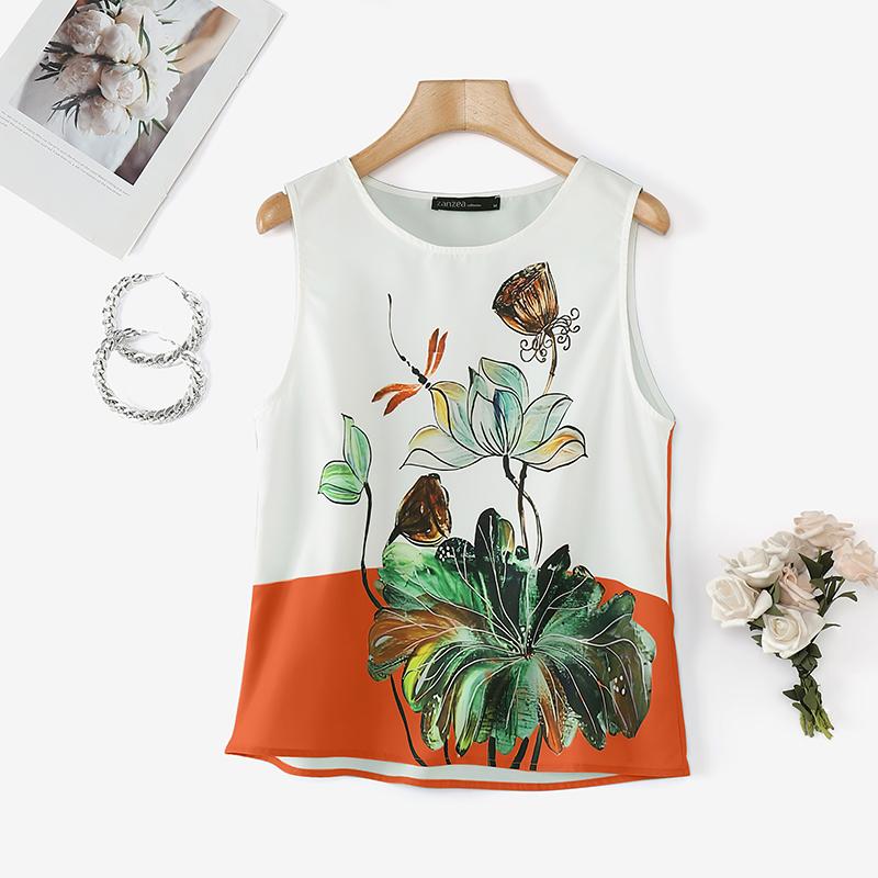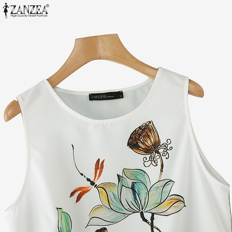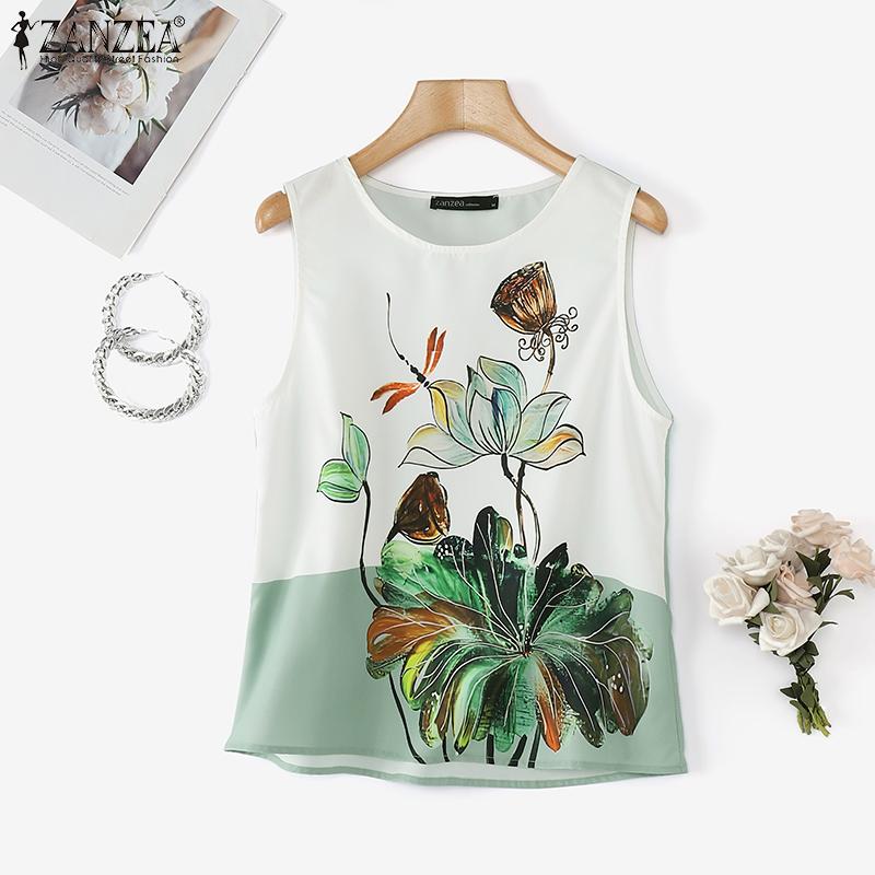ZANZEA Женские летние свободные жилеты без рукавов с круглым вырезом и цветочным принтом
