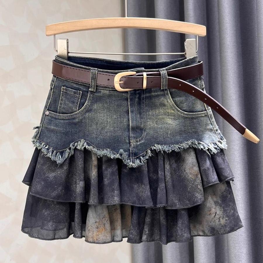 Винтажная джинсовая юбка с плетением для женщин Юбка-карандаш Y2K с высокой талией, стройнящая А-силуэта, короткая мини-юбка