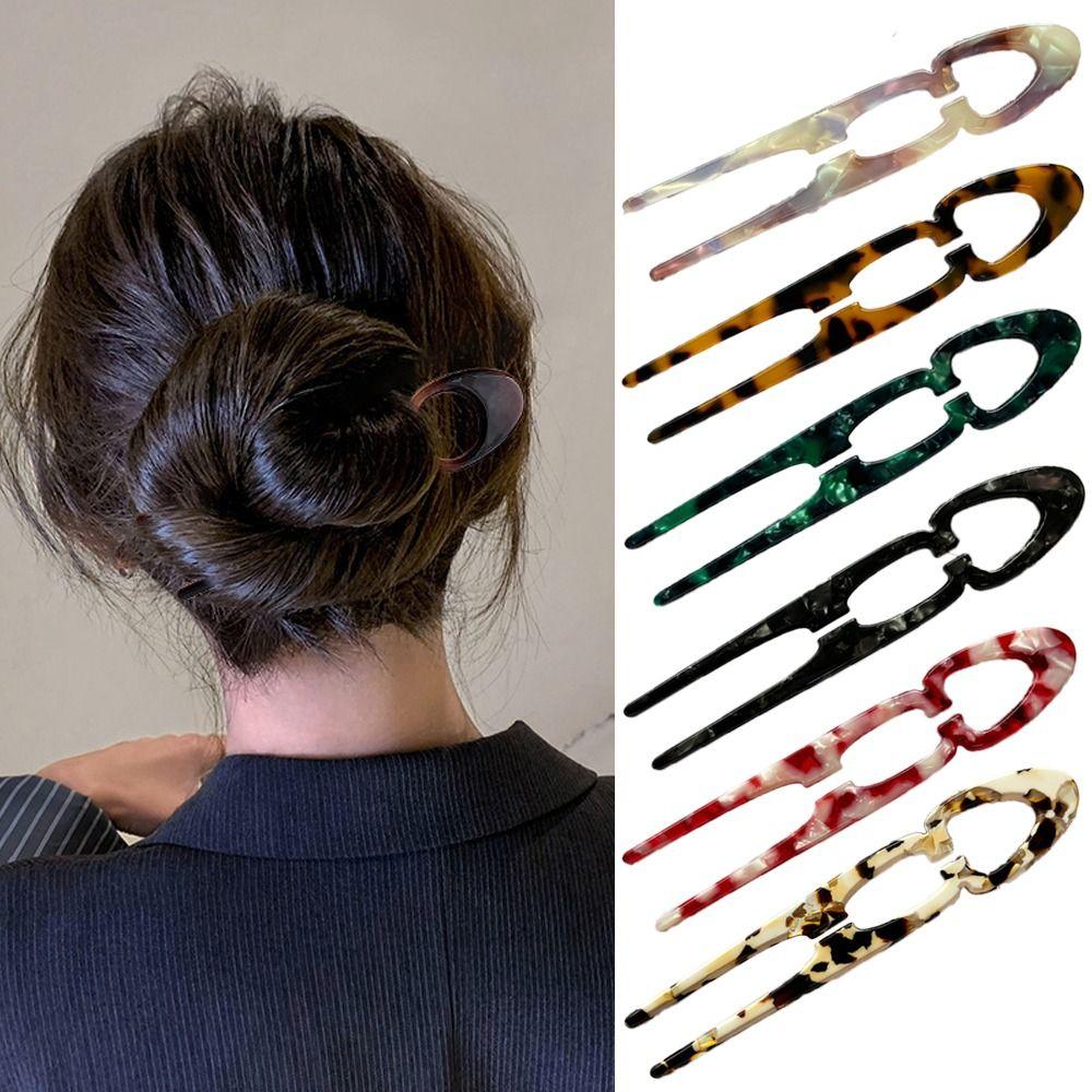 Acetate Hair Sticks U-Shaped Bun Hairpin Sweet Meatball Head Hairclip For Woman Girl