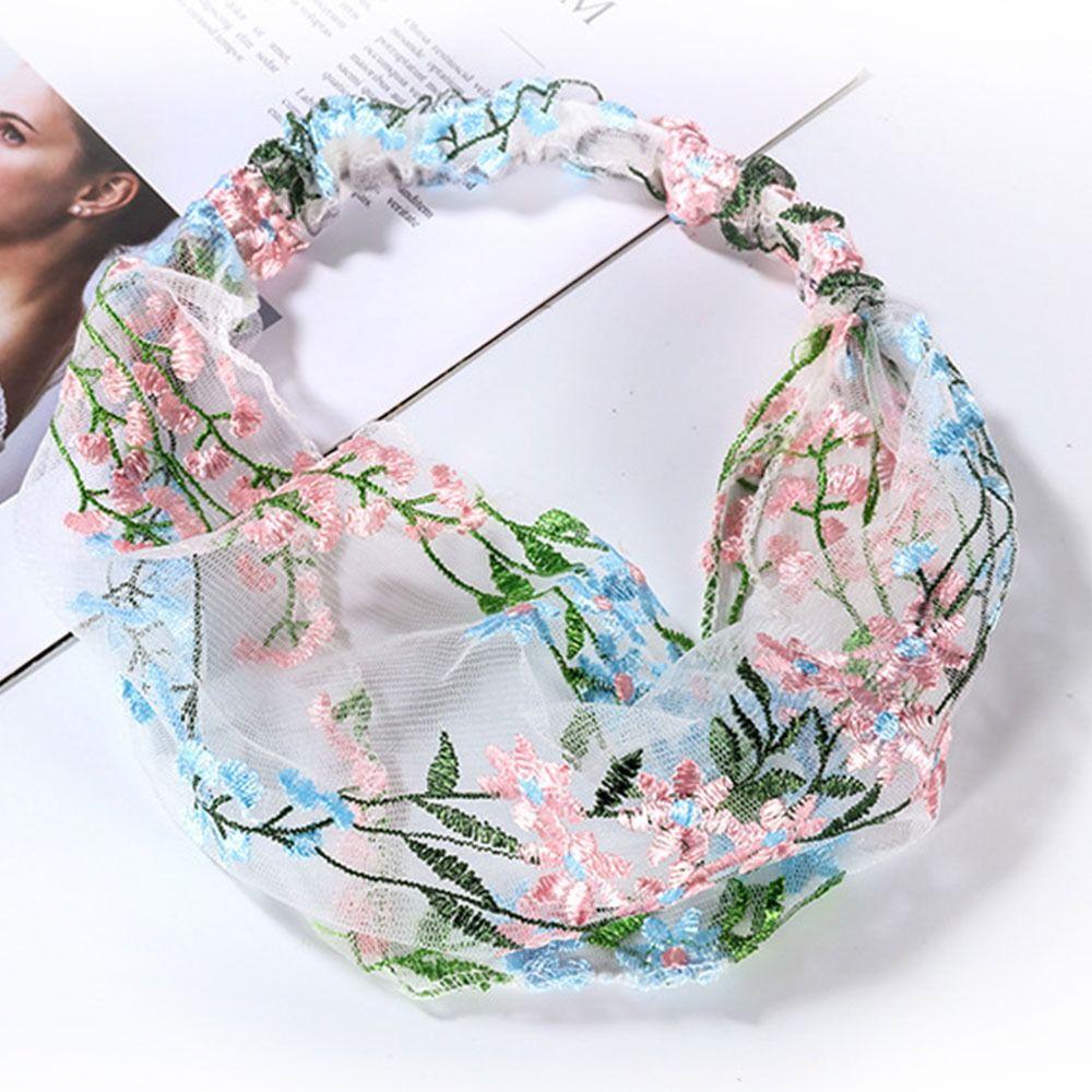 Thin Flower Pattern Headband Hair Cover Lace Headwear Gift Embroidered Headscarf Female