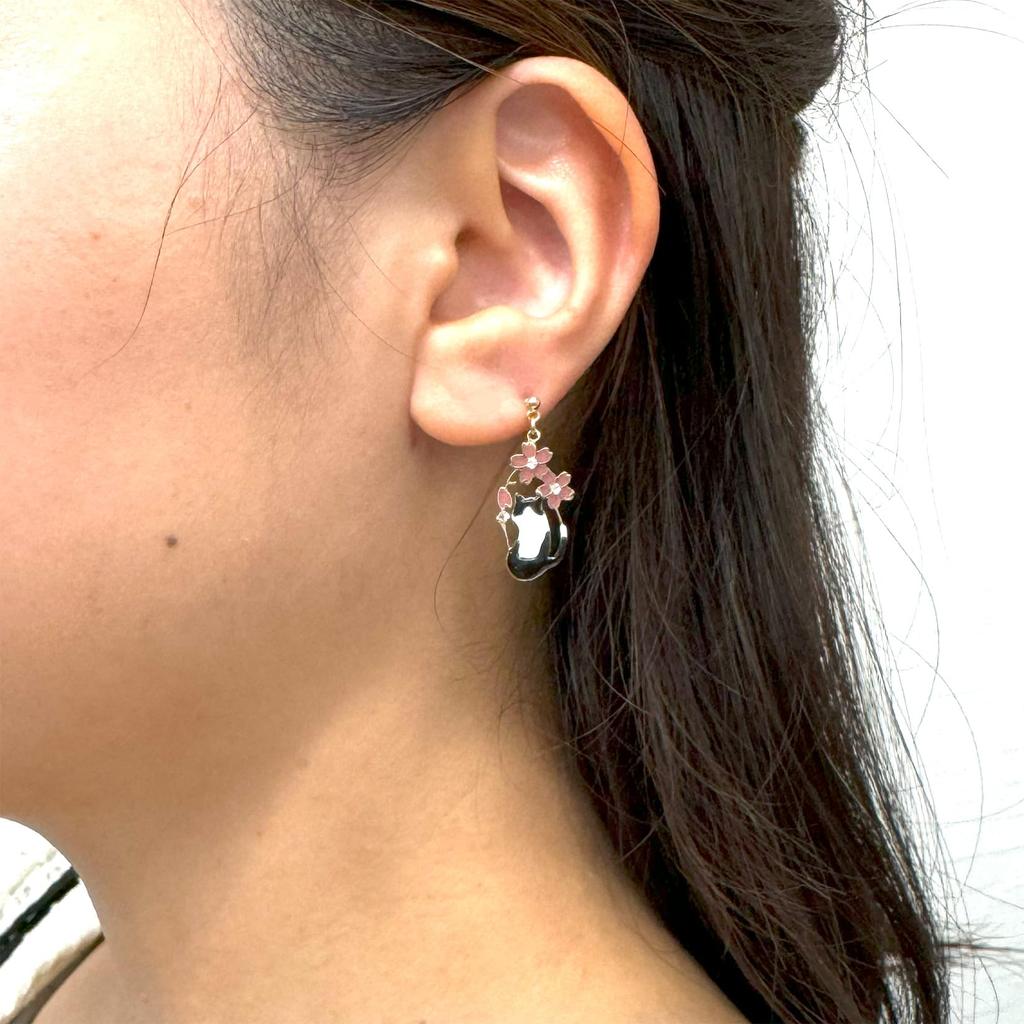 Магазин Титан Японская Вишня Асимметричный Металл Сделано в Hachiware Cat acc25 P Свинг hachi [Ювелирные изделия M] Женские серьги, Пусеты, Узор,