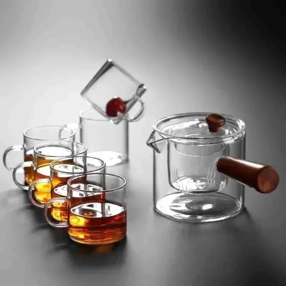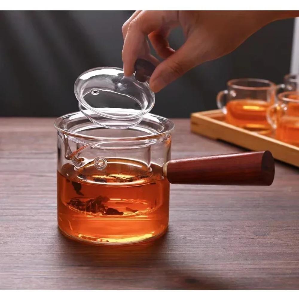 Японский стеклянный чайник с боковыми ручками Чайник с деревянными ручками Чайный сервиз в стиле кунг-фу Утолщенный чайник Интуитивный чайник