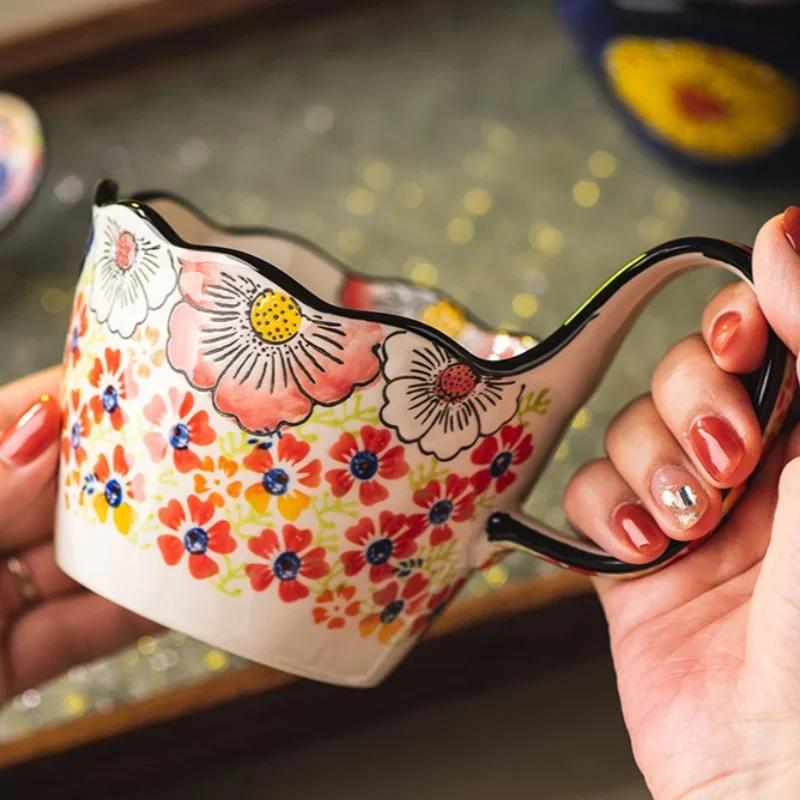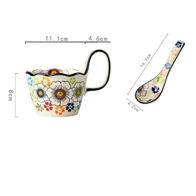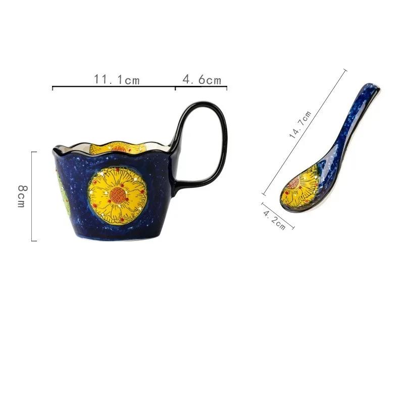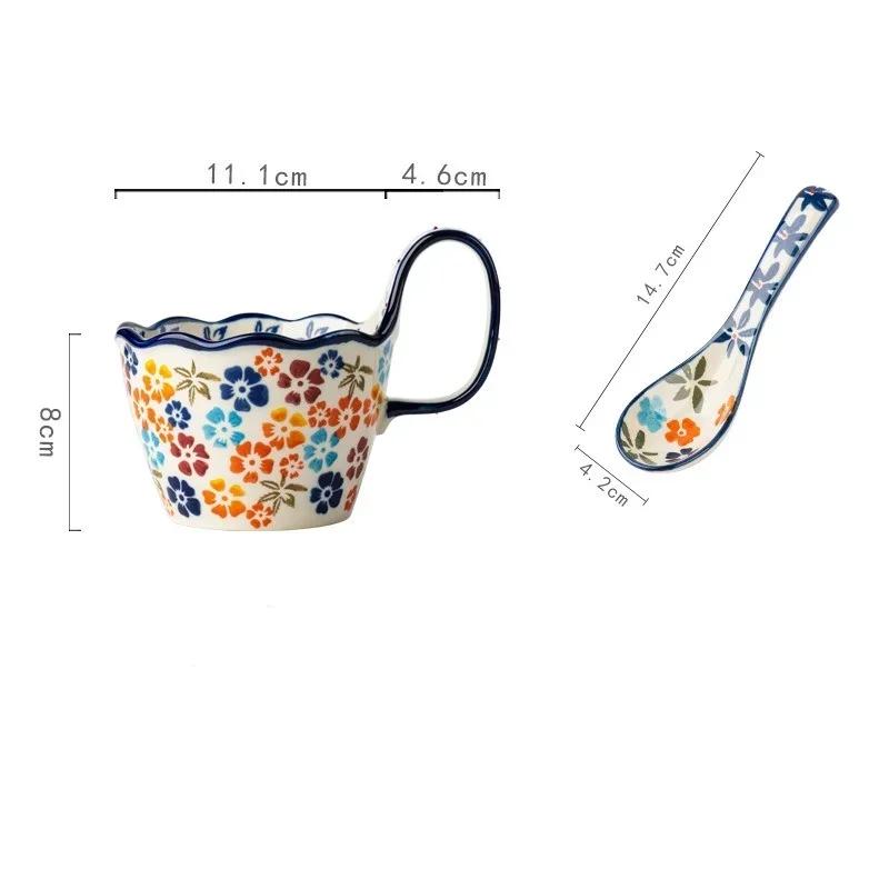 400 мл керамическая кружка расписанная вручную цветочная ручка кофейная чашка с маленькой ложкой офисная домашняя чашка для завтрака молочная чашка праздничный подарок для пар