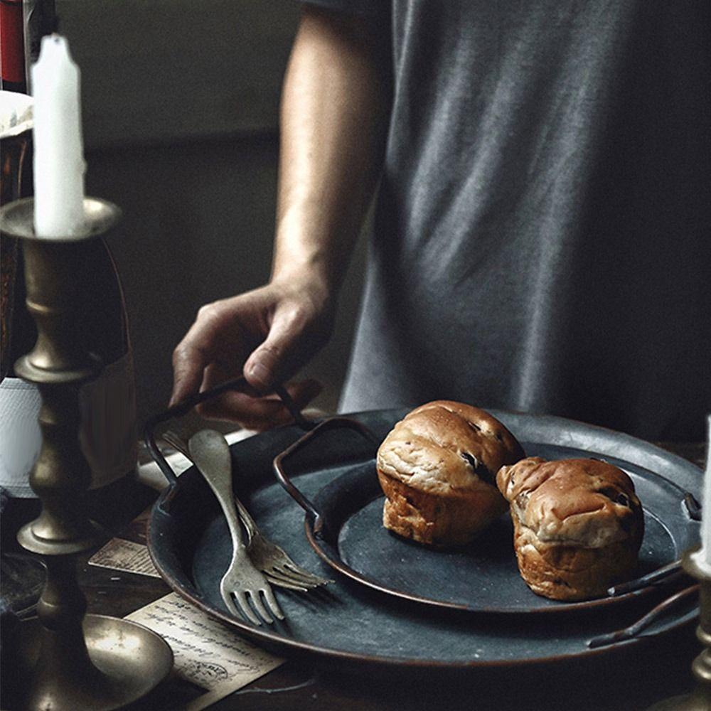 Круглый с ручкой декоративный поднос для хранения хлеба поднос для сервировки ретро металлические подносы для хлеба