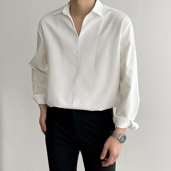 Эта мужская рубашка прямого кроя выглядит стильно и непринужденно.. Выполненный в однотонном цвете, он легко сочетается с разным низом, таким как брюки, джинсы и повседневные брюки.. Эта рубашка с длинными рукавами, воротником-лацканами и уникальным V-образным вырезом подчеркивает вашу индивидуальность..