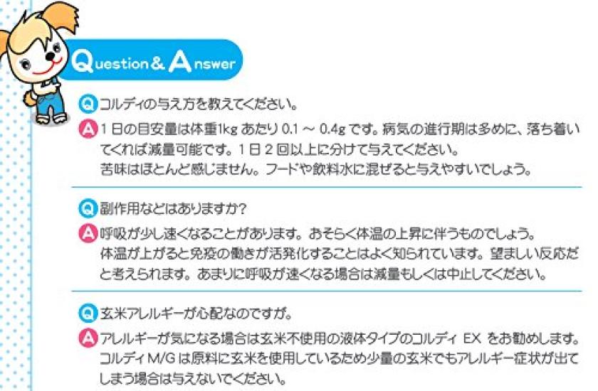 Cordi — это чисто японская добавка, которая используется в более чем 250 ветеринарных больницах по всей стране.. Его производят путем культивирования мицелия кордицепса китайского на санитарной фабрике в Японии и высушивания его до состояния порошка.. Его также можно использовать в сочетании с существующими препаратами.