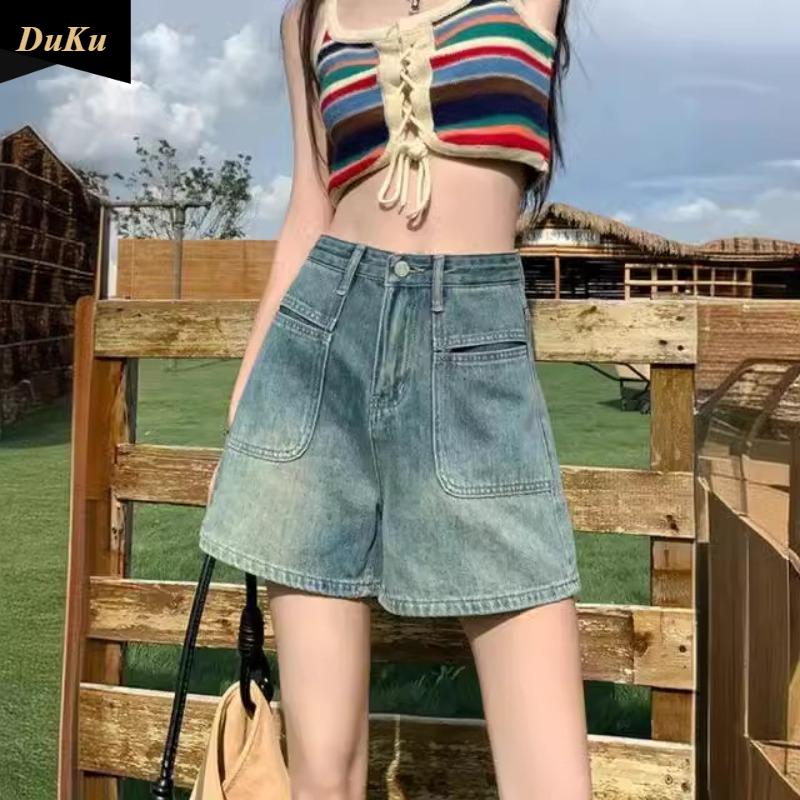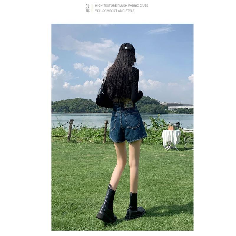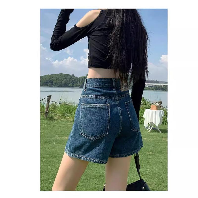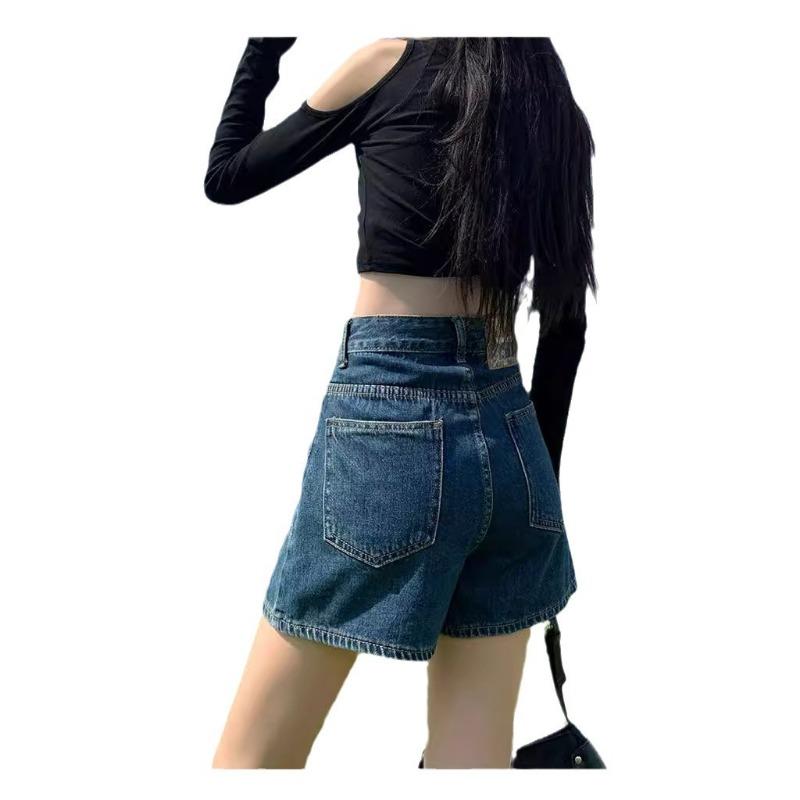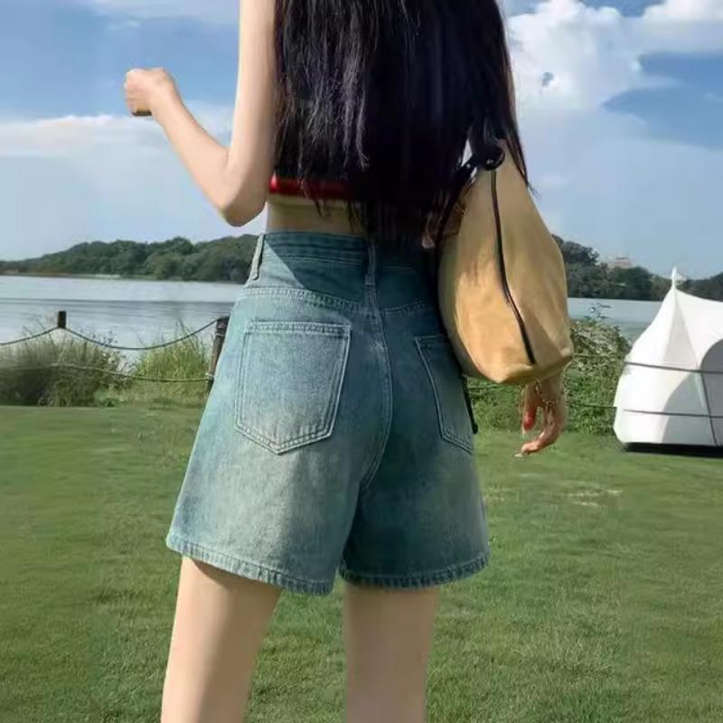 Джинсовые шорты с высокой талией, женские, свободный дизайн, тонкие, в стиле ретро, широкие брюки