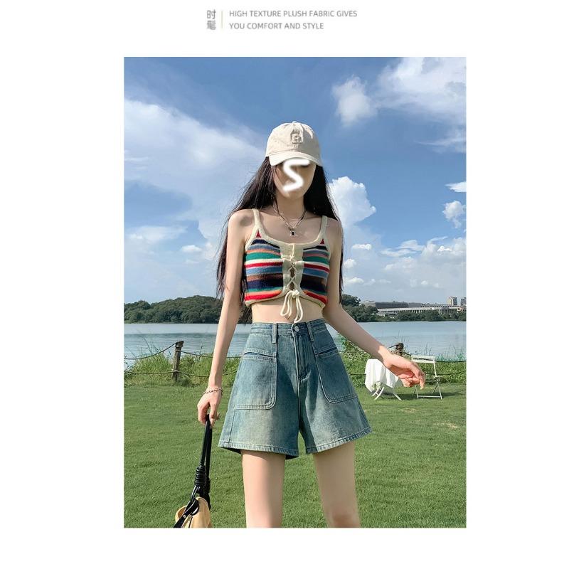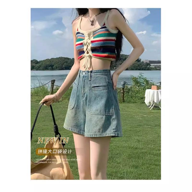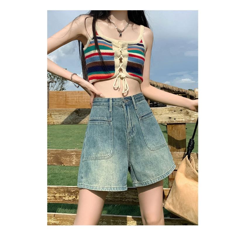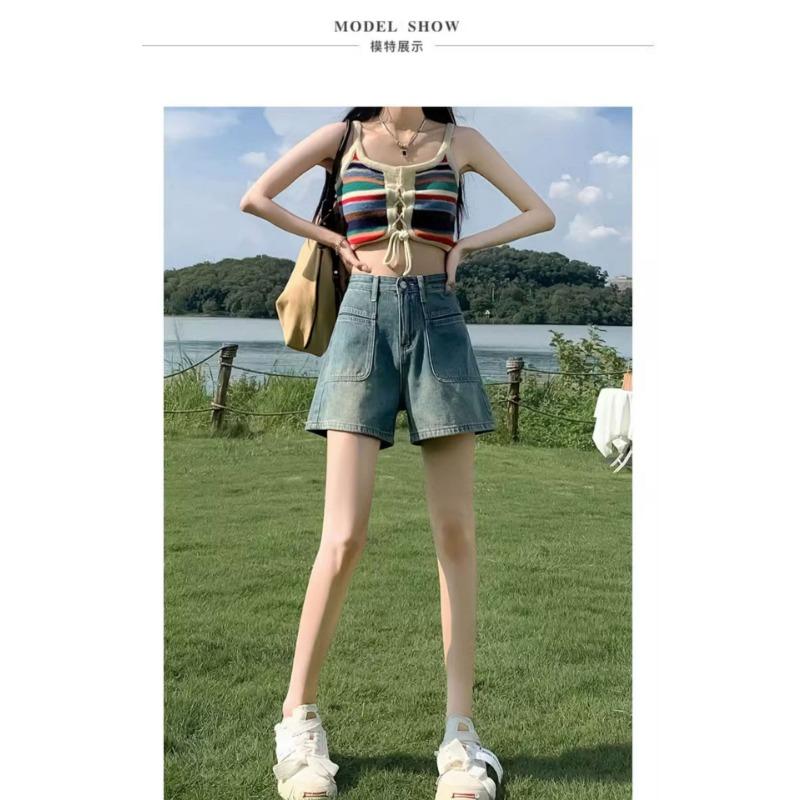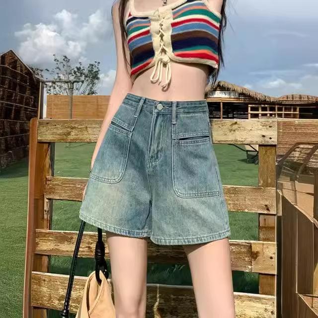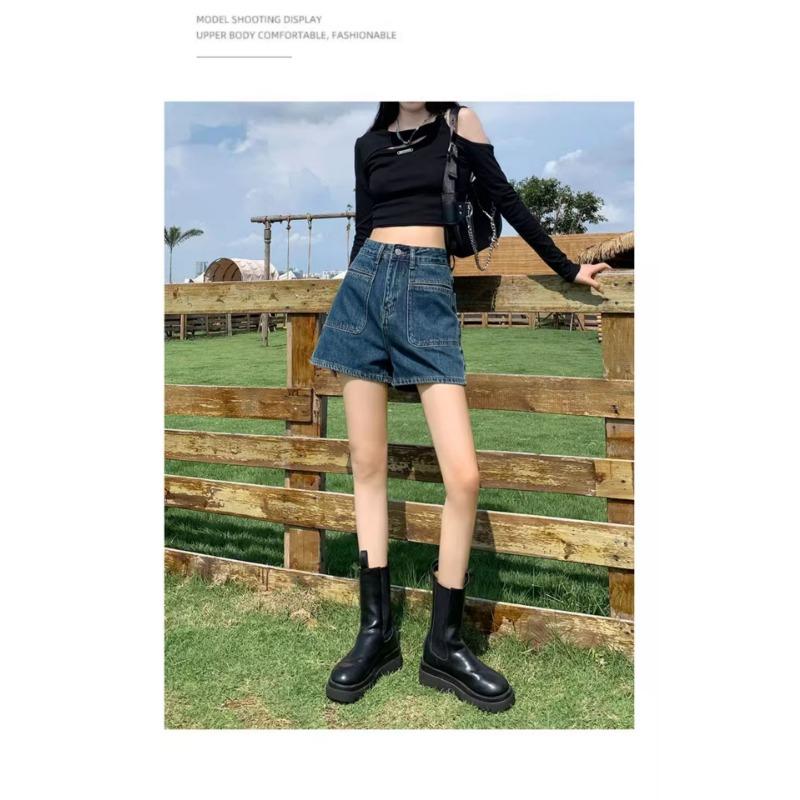 Джинсовые шорты с высокой талией, женские, свободный дизайн, тонкие, в стиле ретро, широкие брюки