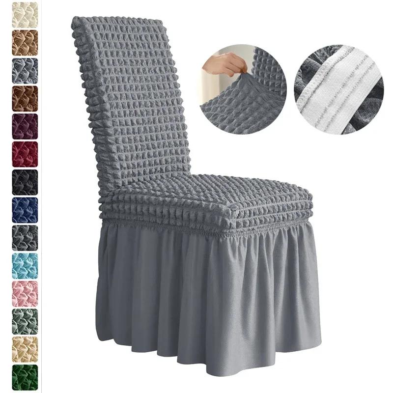 1шт чехол для стула из ткани сирсакер с юбкой, эластичные чехлы для стульев для свадьбы, чехлы для стульев в столовой, универсальный размер, чехлы для сидений для банкета, вечеринки
