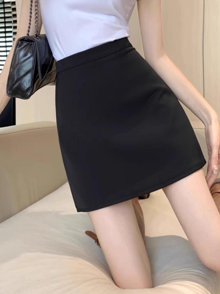 Женская черная юбка А-силуэта с высокой талией, весна 2024 г. — облегающая, короткая, закрывающая глаза юбка в студенческом стиле.