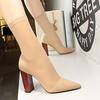 Европейская и американская мода Wood Grain Толстый каблук остроносый лайкра Сексуальные тонкие короткие сапоги