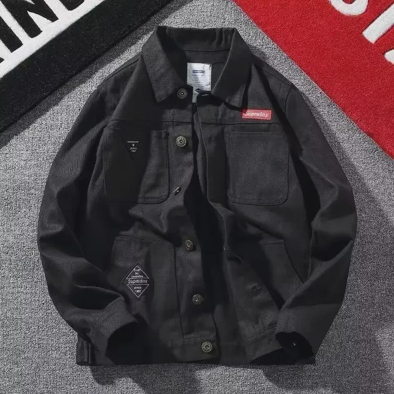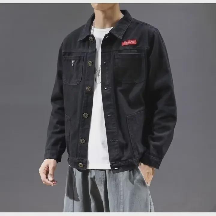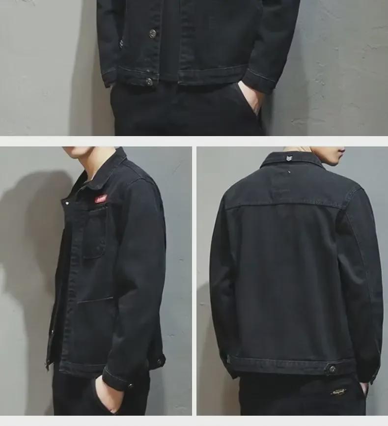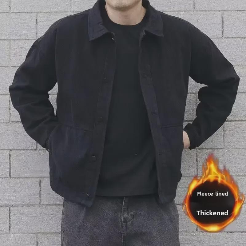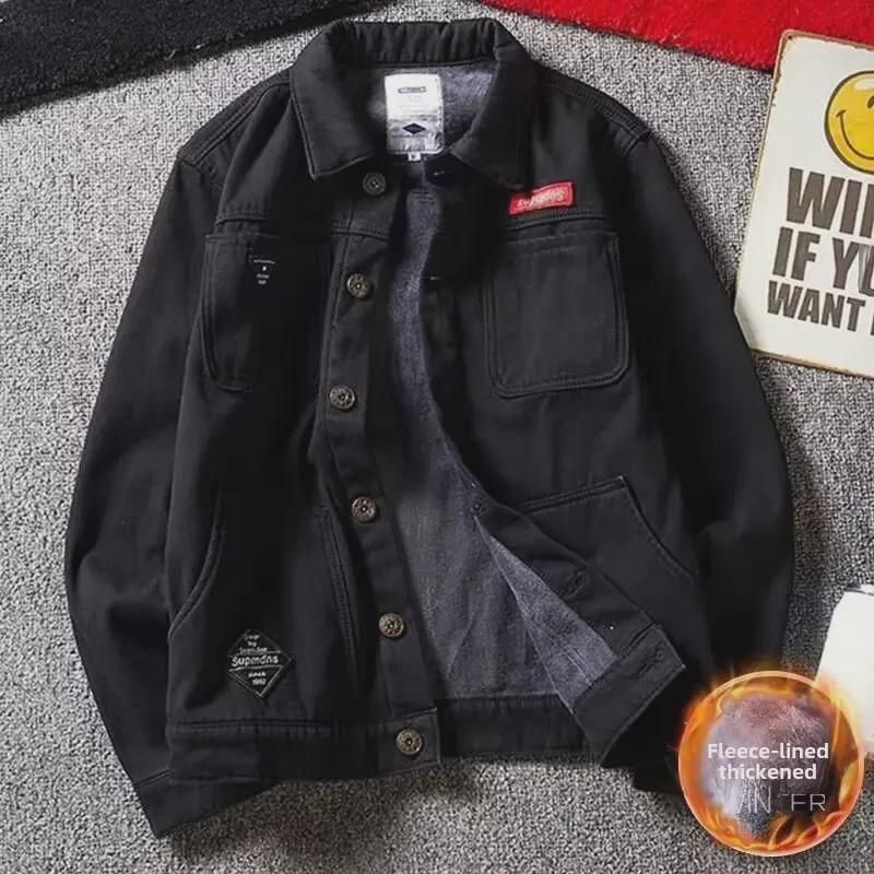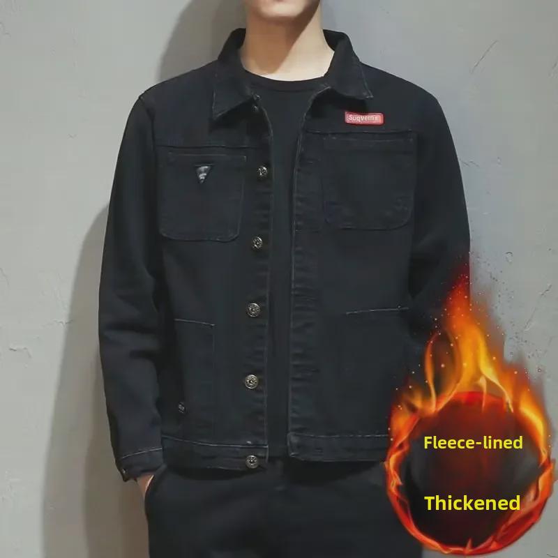 Мужская куртка-пилот свободного кроя из денима в корейском стиле - плотная, с добавлением бархата, для осени и зимы