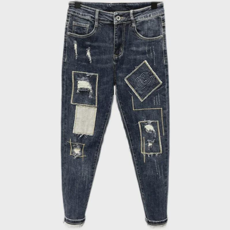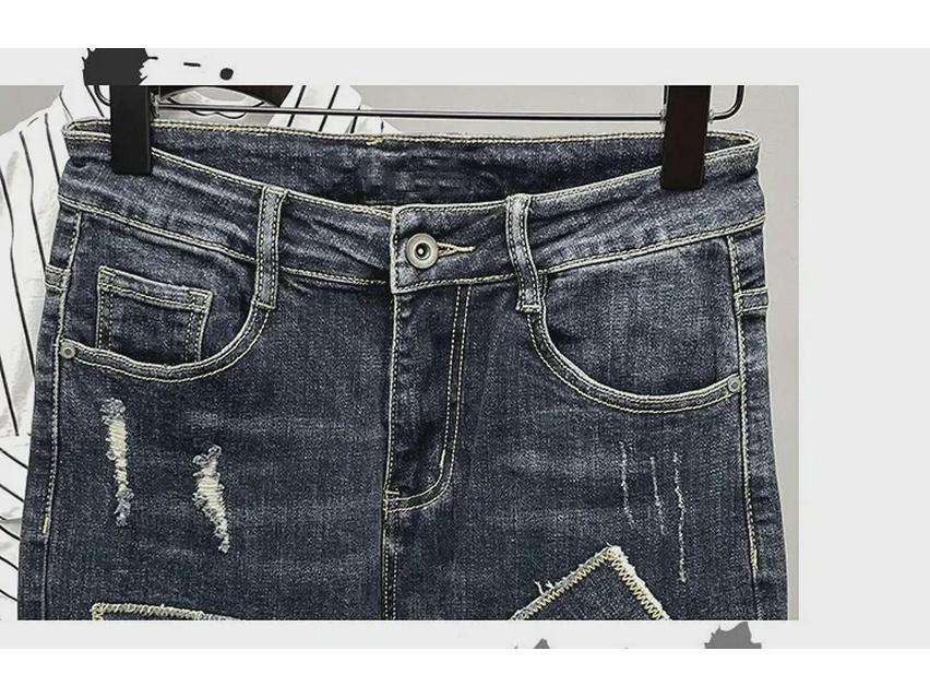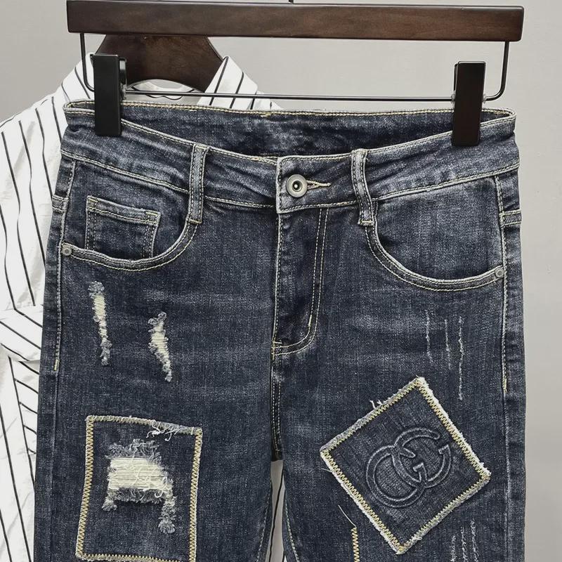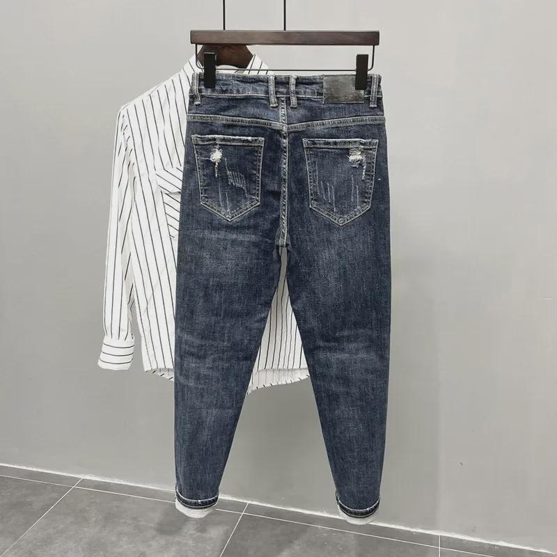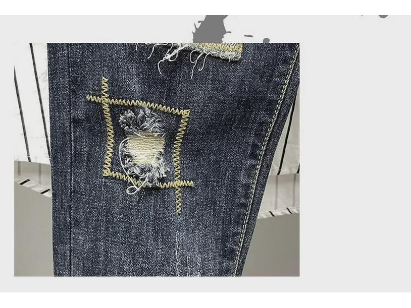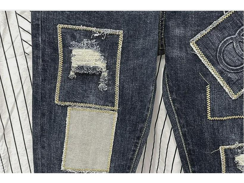 Мужские облегающие джинсы скинни в корейском стиле с рваными нашивками
