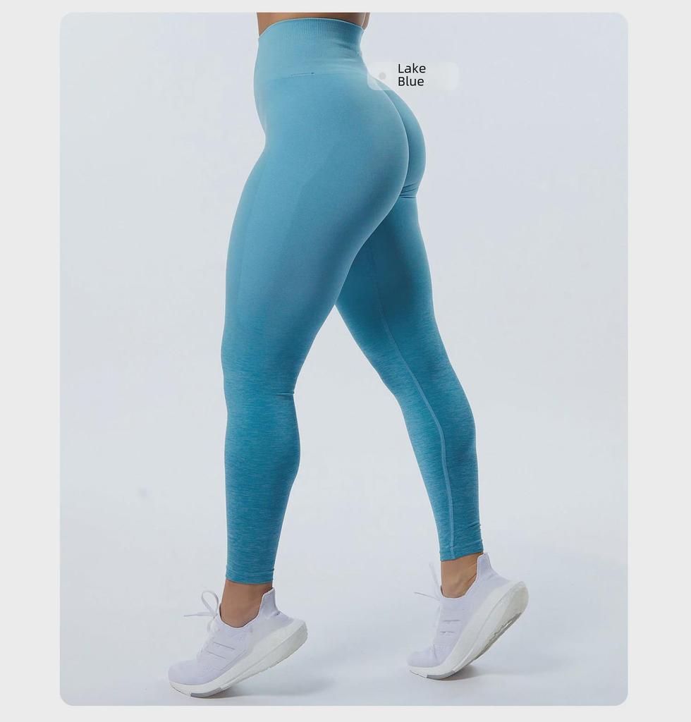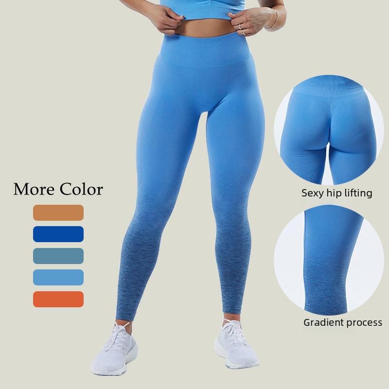 В наличии! Женские брюки для йоги с высокой талией и градиентом — бесшовные, дышащие и высокоэластичные, с функцией подтяжки бедер.