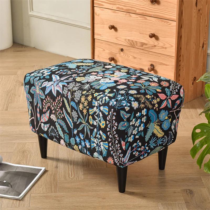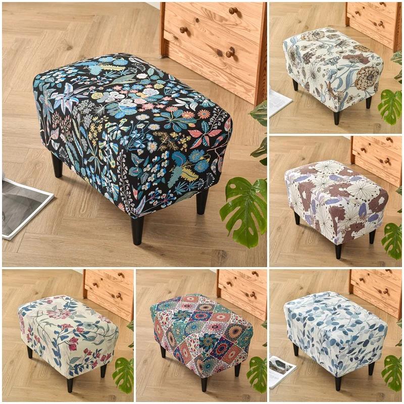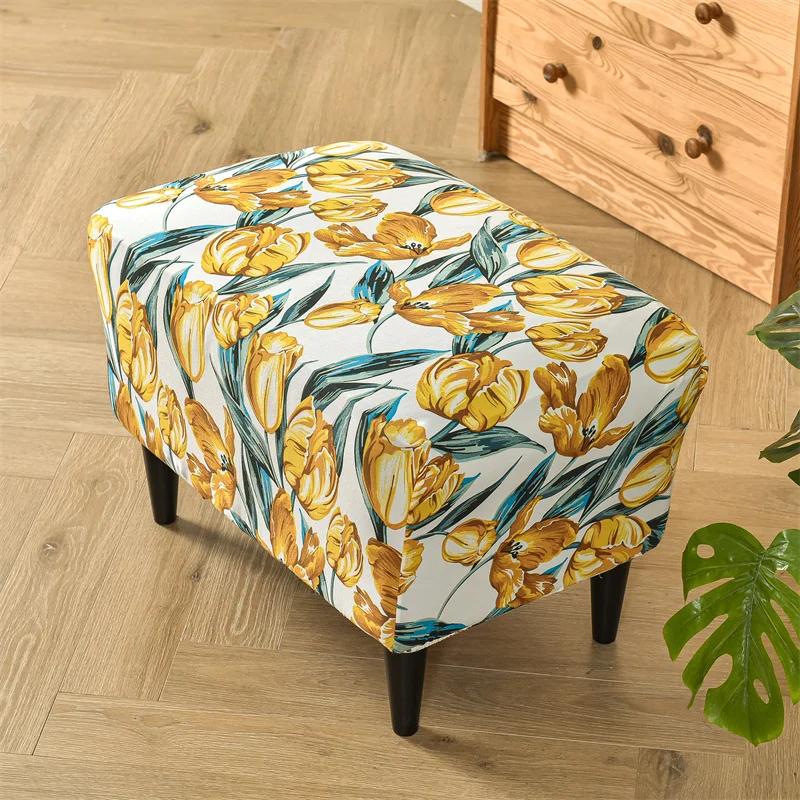 Чехол для пуфа с цветочным принтом, прямоугольный эластичный чехол для стула, чехол для пуфа из спандекса, защитная мебель для гостиной