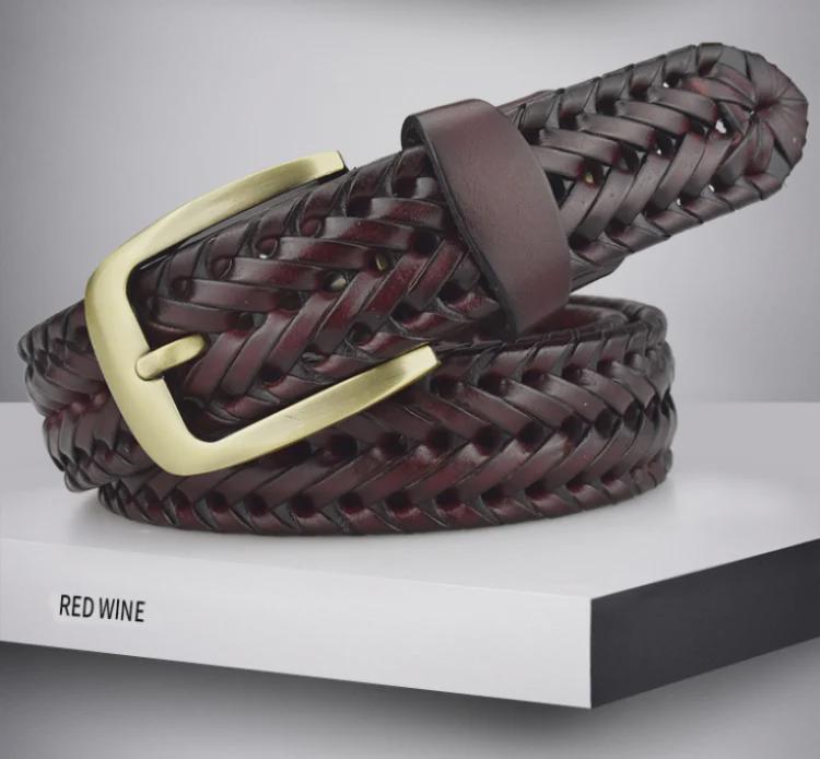 Мужской ретро-ремень из кожи ручной работы с дышащей пряжкой