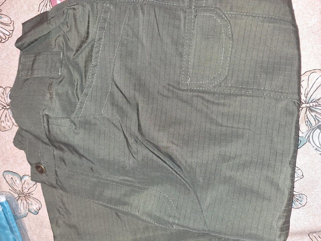 Заказ пришёл в сборной посылке. Всё хорошо упаковано. Выбирала по размерный сетке. Материал мягкий, похож на хлопок, дышащий. Много карманов, как раз то что хотела. Хоть они и мужские, на меня сели идеально. Оставлю себе.
