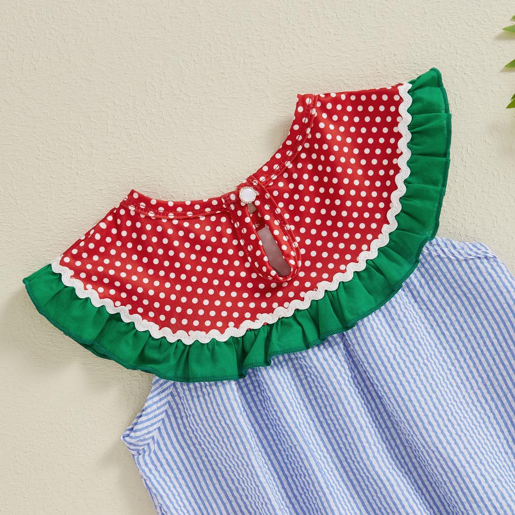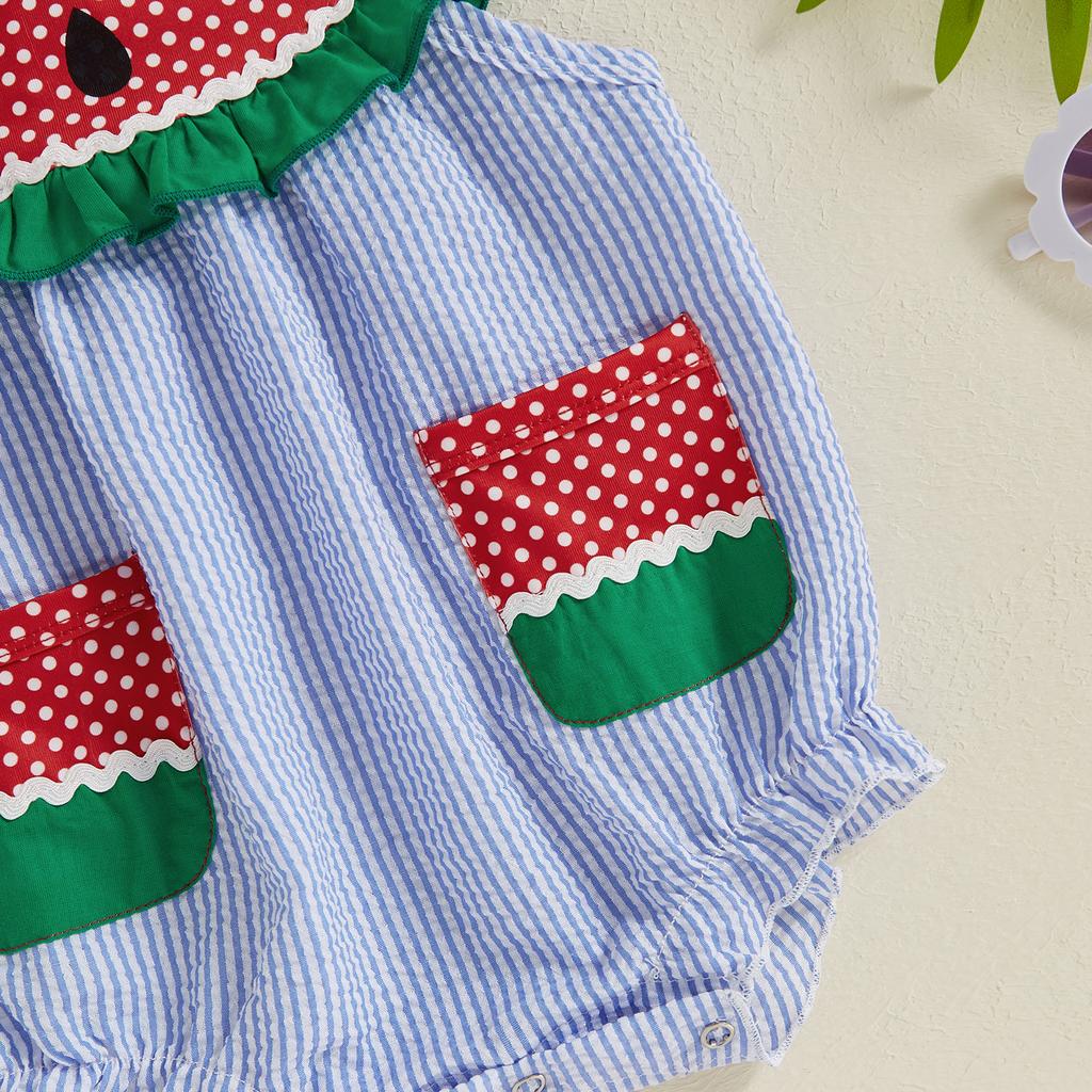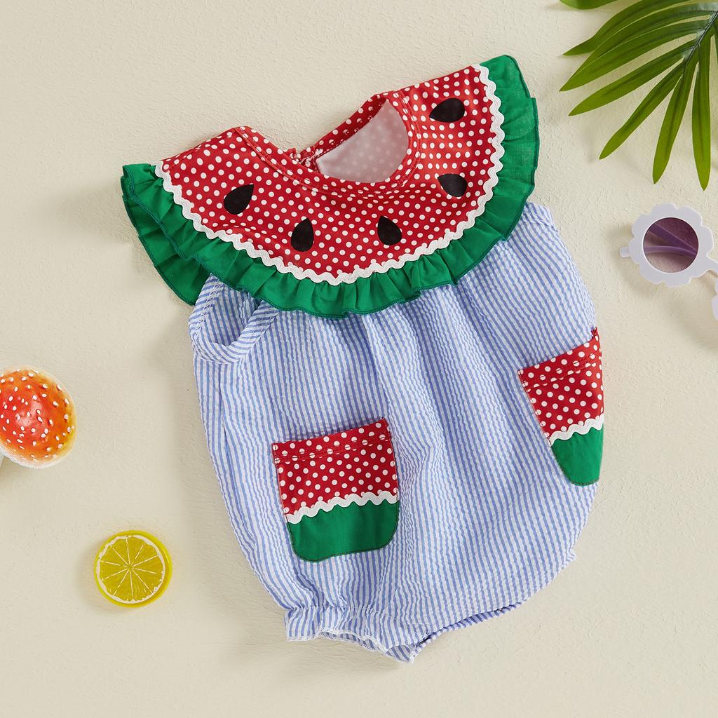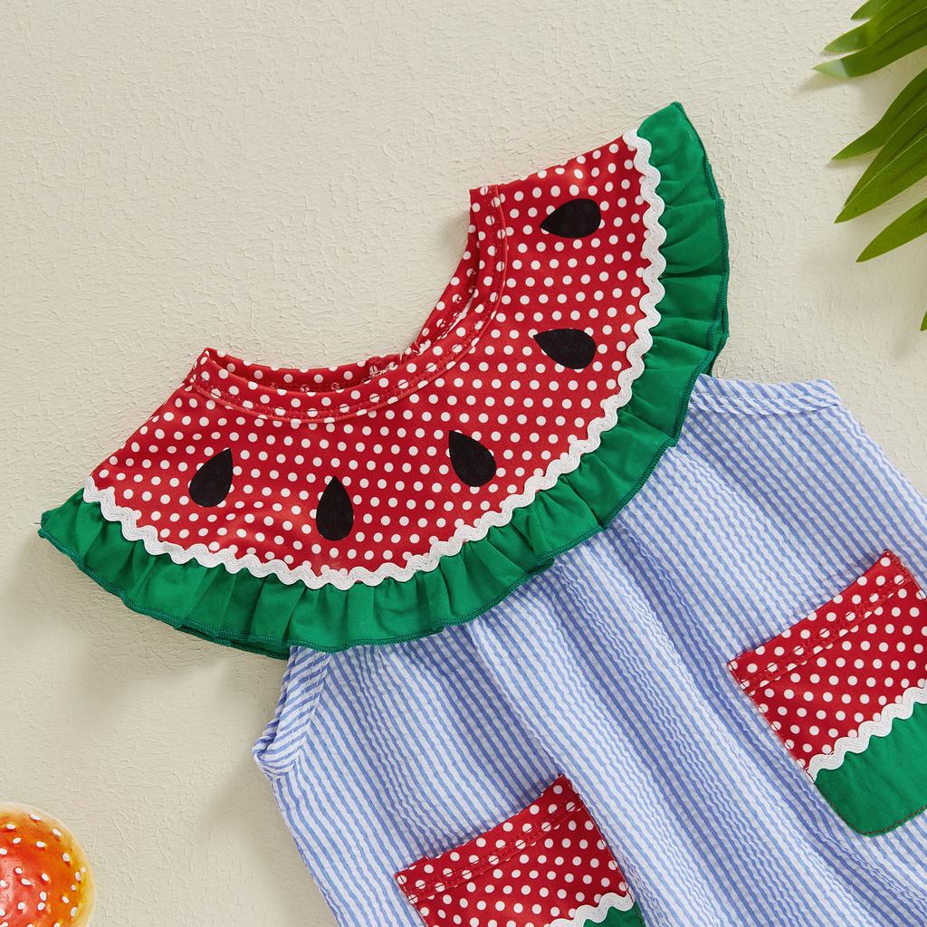 Комбинезон для девочек и мальчиков с принтом арбуза, без рукавов, с карманами, полосатый комбинезон для малышей на лето