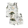 Комплект из 2 летних спортивных костюмов для малышей, безрукавка с принтом мультяшного динозавра + шорты с эластичной резинкой на талии для мальчиков от 0 до 24 месяцев