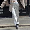 Женские брюки из искусственной кожи с высокой талией — мода осень/зима 2024 года, яркие цвета, повседневный стиль.