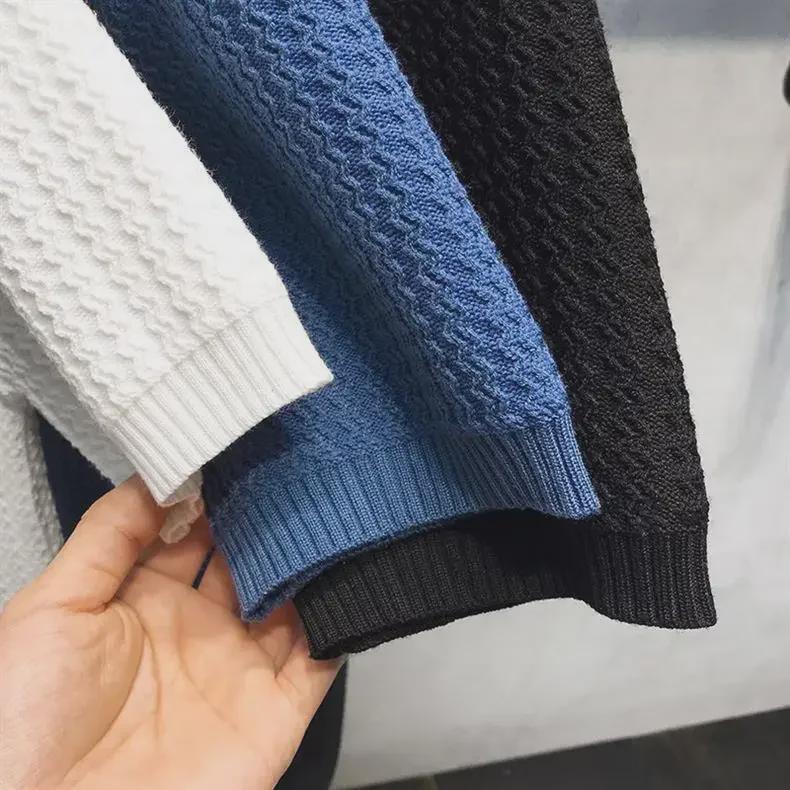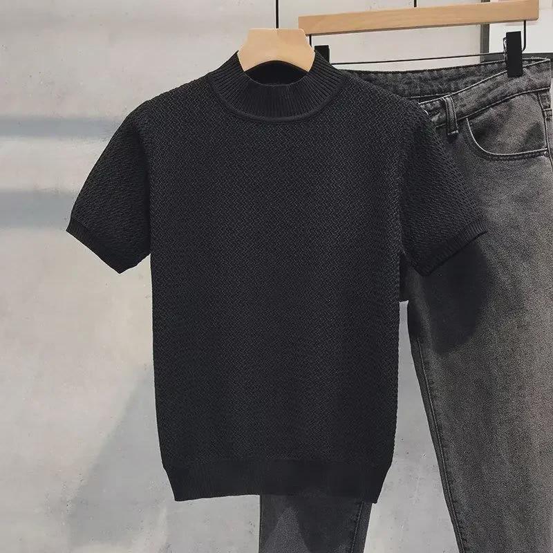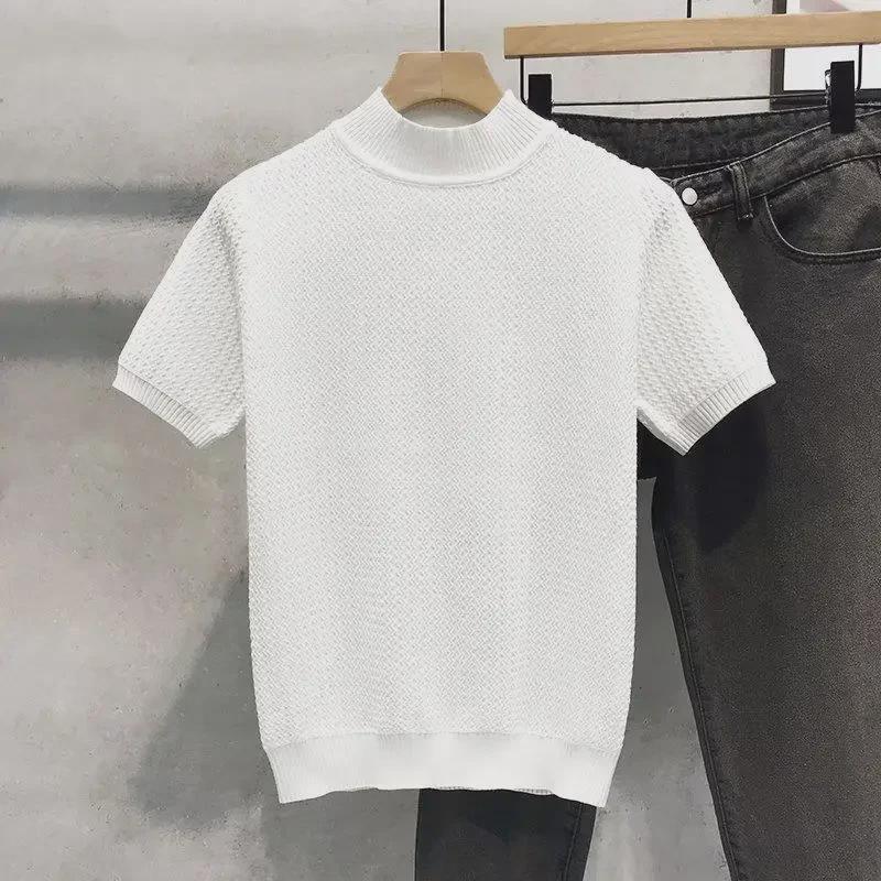 2023 Мужская модная однотонная трикотажная футболка-свитер с полувысоким воротником и коротким рукавом