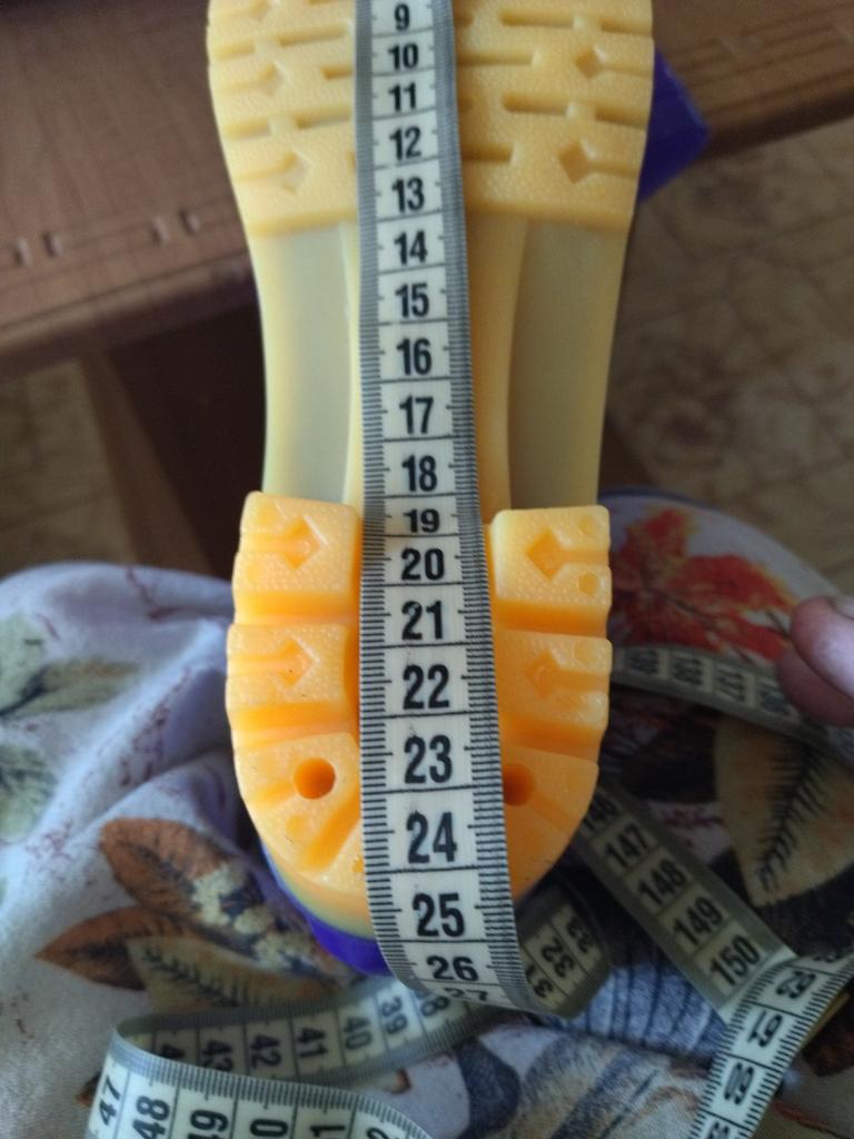 Сапоги мягкие,лёгкие.У меня стопа 23см.,отлично подошли 39 (на фото всё видно)можно вместо вкладыша надеть теплые носки.Вкладыши тонкие ,на долго не хватит..