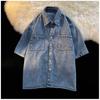 Модная японская джинсовая рубашка с коротким рукавом для мужчин - свободный крой, молодежная летняя мода