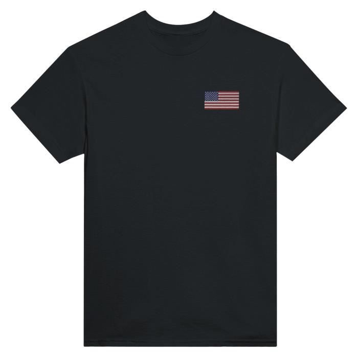 T-shirt - PIXELFORMA - Drapeau des États-Unis - Broderie Noir - 100% Coton - Coupe Classique