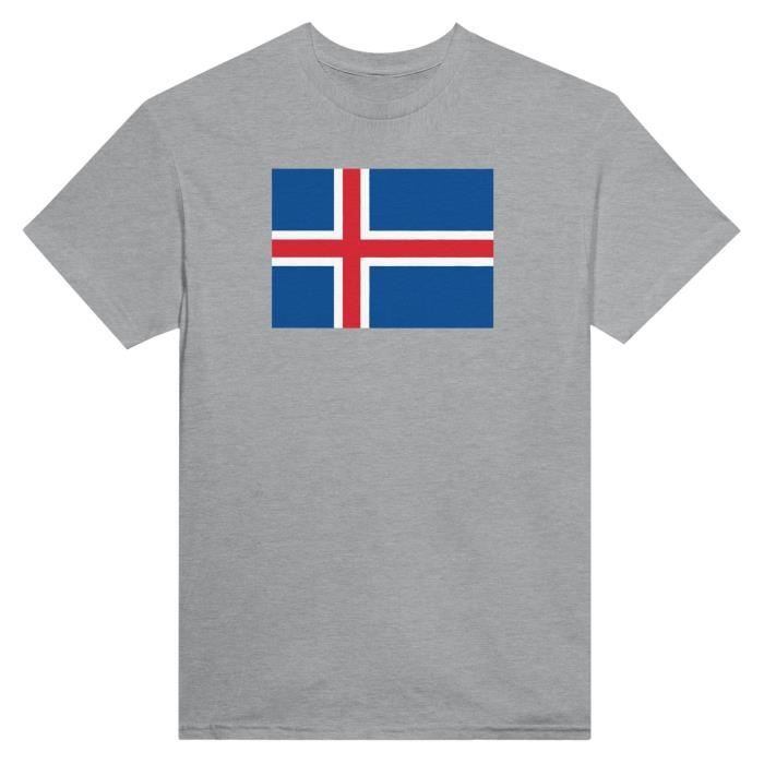 T-shirt - PIXELFORMA - Drapeau de l'Islande - 100% coton - Gris - Manches courtes