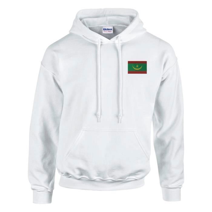 Sweat à capuche - PIXELFORMA - Drapeau de la Mauritanie - Blanc - Manches longues - Col capuche