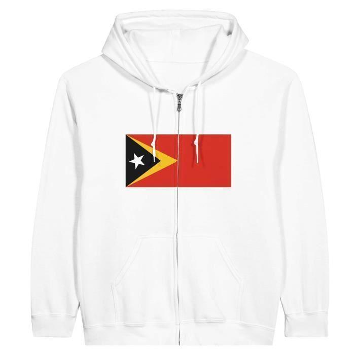 Sweat à capuche - Drapeau du Timor oriental - Blanc - Polyester-coton - Manches longues - Mixte