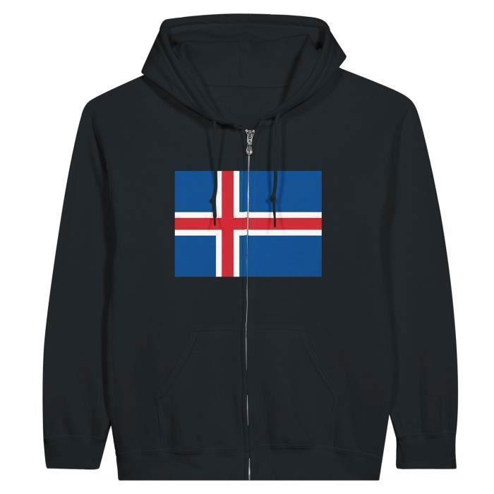 Sweat à capuche - PIXELFORMA - Drapeau de l'Islande - Noir - Polyester-Coton - Zippé — купить товар онлайн с бесплатной доставкой до всему миру!