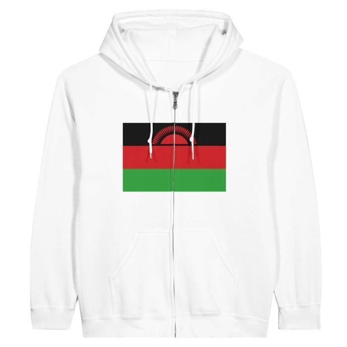Sweat à capuche - PIXELFORMA - Drapeau du Malawi - Blanc - Polyester-Coton - Zippé