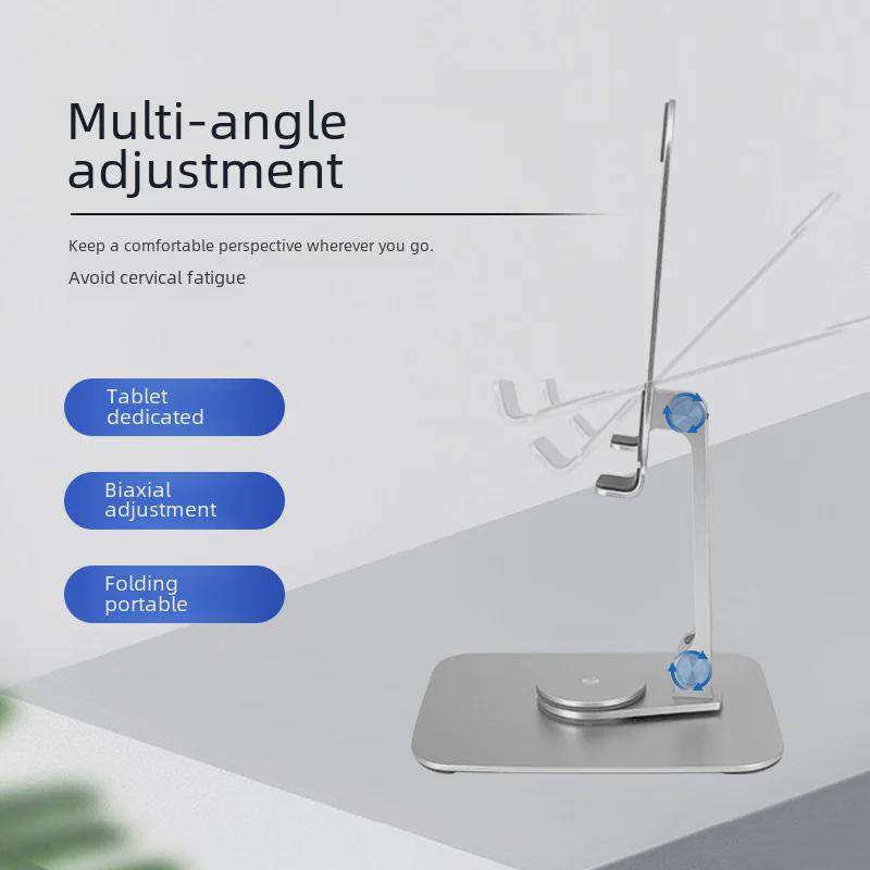 Вращающаяся подставка для планшета из алюминиевого сплава с регулировкой по трем осям и нескользящей складной конструкцией