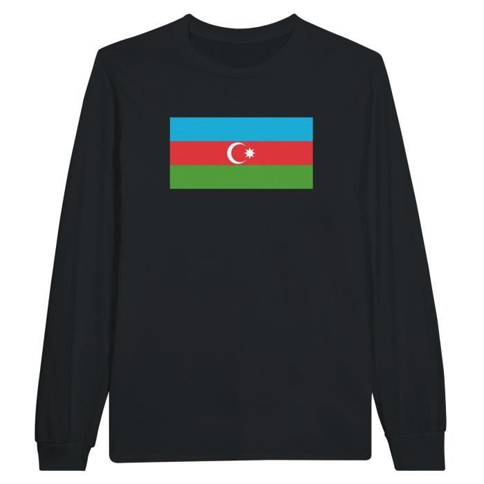 T-shirt à manches longues - PIXELFORMA - Drapeau de l'Azerbaïdjan - 100% coton - Noir - Confort optimal