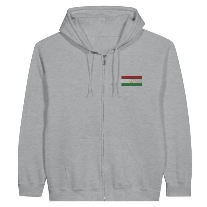 Sweat à capuche à Fermeture éclair - PIXELFORMA - Drapeau Tadjikistan - Gris - Manches longues - Mixte