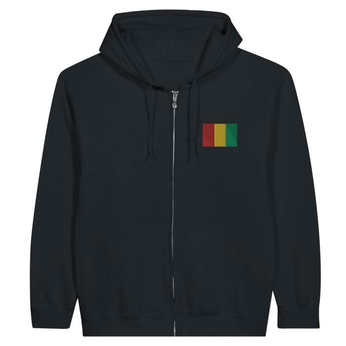 Sweat à capuche à Fermeture éclair - PIXELFORMA - Drapeau de la Guinée - Noir - Manches longues - Mixte