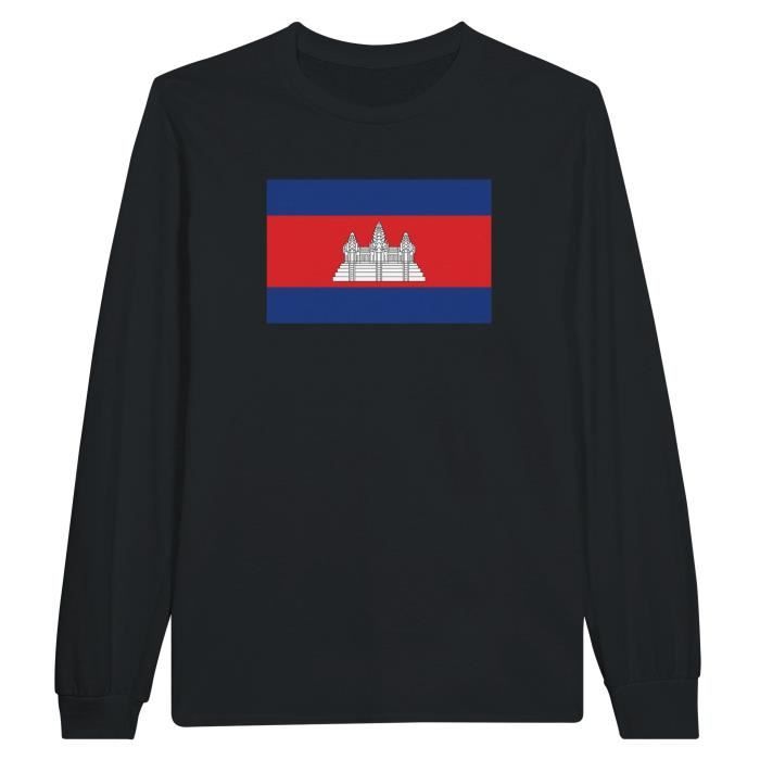 T-shirt à manches longues PIXELFORMA - Drapeau du Cambodge - Noir - Regular - Adulte - Col classique