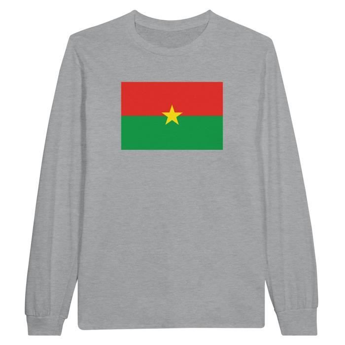 Длинная футболка - Drapeau du Burkina Faso - Gris - 100% хлопок - Coupe classique - Mixte