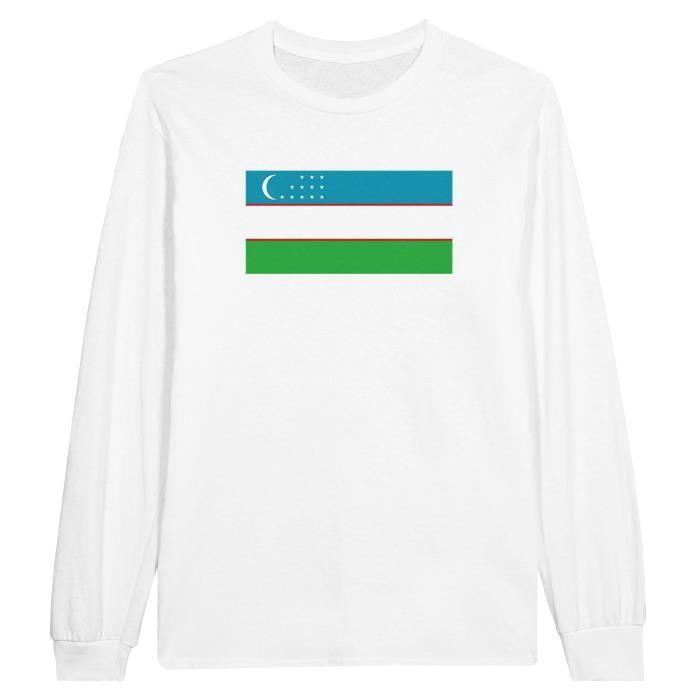 T-shirt à manches longues - Drapeau de l'Ouzbékistan - Blanc - 100% coton - Coupe régulière - Manches longues