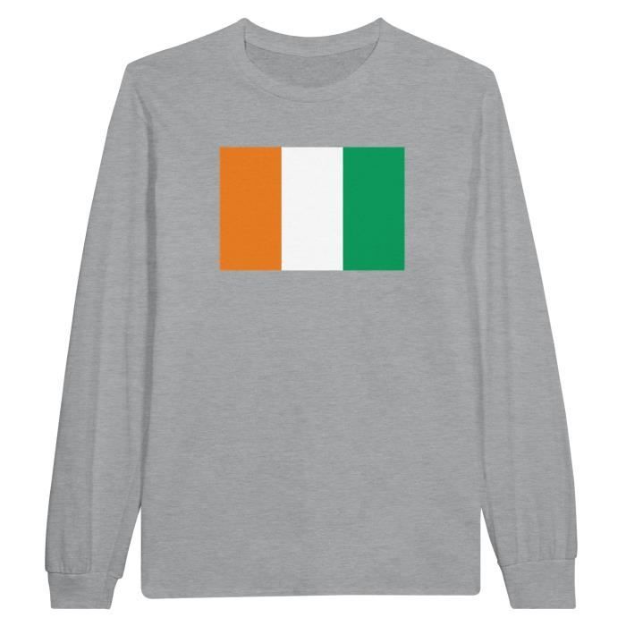 T-shirt à manches longues - Drapeau de la Côte d'Ivoire - Gris - 100% coton - Coupe classique - Mixte — купить товар онлайн с бесплатной доставкой до всему миру!